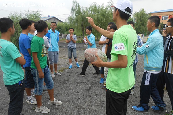 7月22日早8时整,bat365中文官方网站“科技点亮乡村”社会实践队伍在巨源第一中学校给小朋友们开展了橄榄球入门活动。此次活动的主讲人为bat365中文官方网站团副苗梦亮、张广朋和校橄榄球队队员、bat365中文官方网站学生会主席王远达。