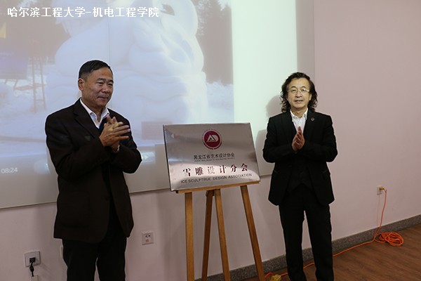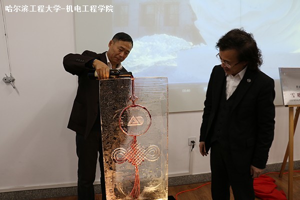 仪式上,张震匍,机电学院工业设计系主任朱世范教授,哈尔滨市画院院长、雪雕设计分会会长、一级美术师吕滨发言。