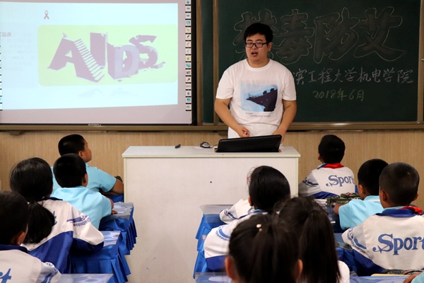 6月29日15时,bat365中文官方网站“三下乡”社会实践队于巨源镇中心小学四年级一班开展防艾知识分享课,综测中心管理部部长祖宏斌担任主讲人。
