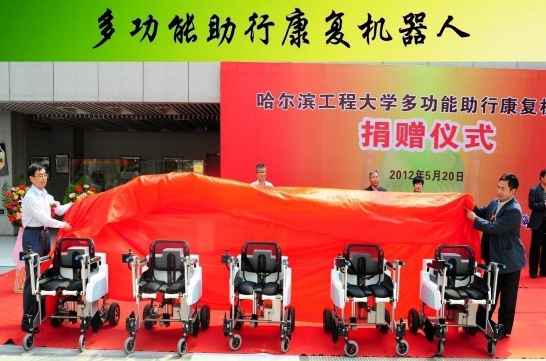 在黑龙江省科技厅支持下,团队将10台多功能助行康复机器人捐赠给3家医院和养老机构,服务于广大下肢运动障碍患者,得到用户单位的一致好评。同时有2台多功能助行康复机器人在北京四季青养老院示范。