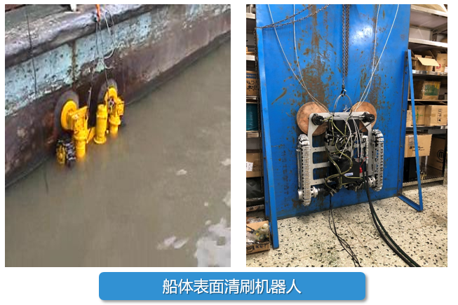 面向海洋平台钢桩、船体表面维护、管径无开挖式铺设等方面,研制了履带式、磁吸式等多种移动方式的清刷机器人,在不影响平台工作、船体停泊的情况下,去除表面附着的贝类、锈皮等杂质。基于蠕动原理,采用冲击爬行方式在土壤中进行穿孔作业,实现电缆、光缆等管线的地下非开挖铺设。