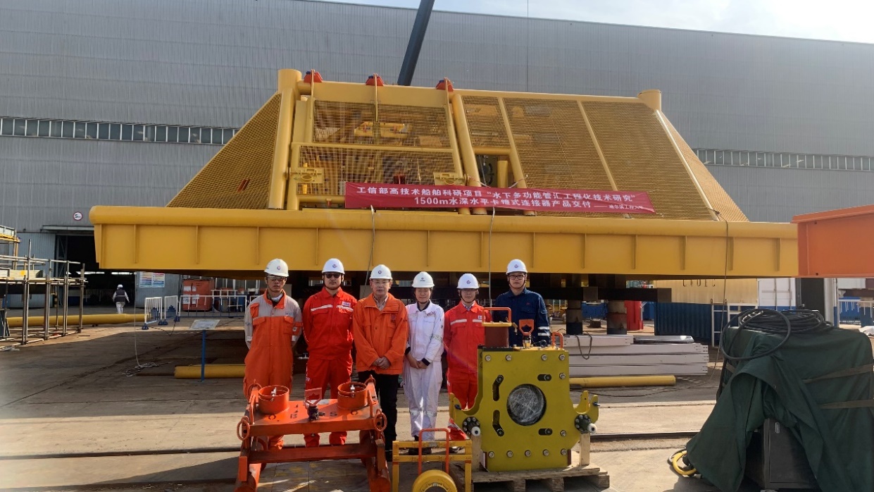 研制的深水水平卡箍式连接器,是国内首台实际应用并进行挪威船级社(DNV)认证的国产化深水水平式连接器,解决了深水水平连接的“卡脖子”技术,于2022年在我国南海乐东22-1油气田进行国内首例国产化连接器的工程应用。标志着我国掌握了深海油气田水下生产系统连接装备设计、制造、测试及海上安装能力,使我国成为世界上少数几个掌握该项技术的国家之一。