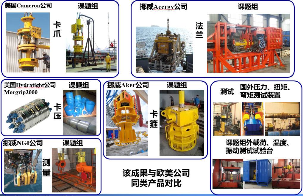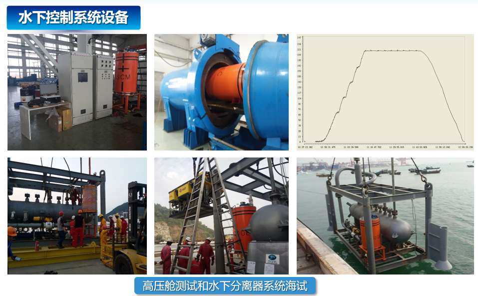 水下控制系统:针对水下控制系统主要核心技术和装备制造技术“卡脖子”问题,研制出国内首套用于水下生产设施的2000米级电液复合式水下控制系统关键装备,并在深圳完成了码头下放试验及高压舱试验;研制出国内首套500米级全电式水下控制模块关键装备,填补了我国在全电式水下生产系统领域的技术空白。研制的2000米级电液复合式水下控制系统关键装备在控制压力等级、冗余功能、通讯方式、传感器接口等关键指标方面基本达到了与国外产品同等的水平,在SEM性能、集成阀块设计等关键指标方面超越了部分国外产品,打破了国外的技术垄断,拥有了自主知识产权;研制的500米级全电式水下控制模块关键装备在供电电压、控制/传感功能路数、水深、驱动功率、保持功能、失效安全关断控制功能等关键指标方面已基本达到了与国外产品同等的水平,标志着我国已缩小了与国外在全电式水下生产系统领域的技术差距,为未来全电式水下控制系统进一步国产化奠定基础,对未来我国实现全电式水下生产系统技术的弯道超车具有重大意义。