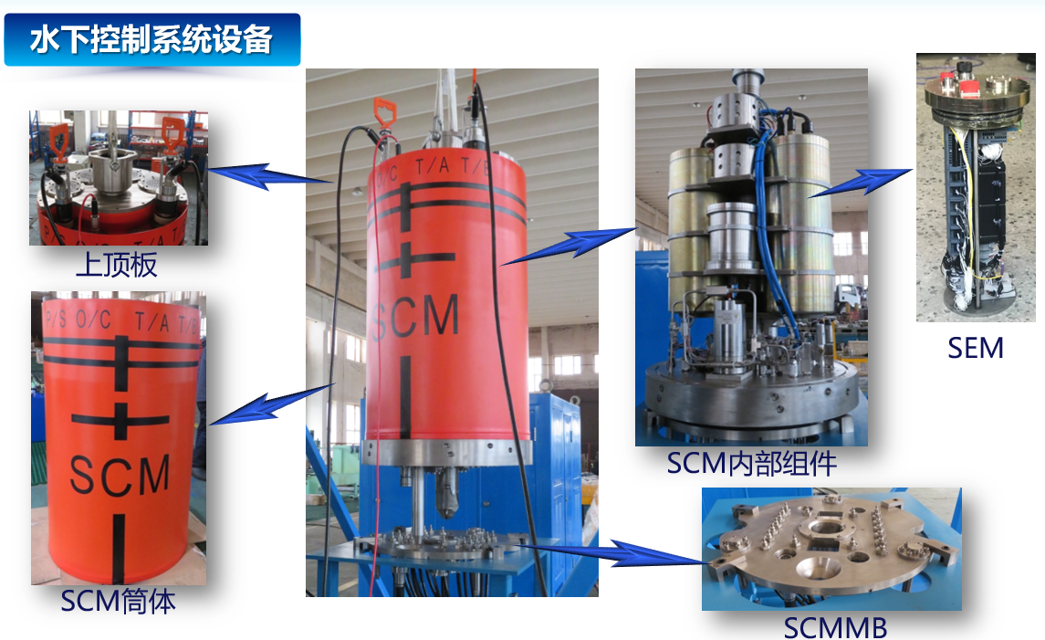 面向海洋油气资源开采国产化核心技术突破,在水下控制系统核心装备——水下控制模块方面开展研究。水下控制模块通过控制水下采油树上的各个阀门,监控采油树的状态,及时向海面上的设备反馈海底设备信息,协调水面生产平台与水下生产系统的工作。现已研制出工程化应用的电液复合式水下控制模块(SCM)和全电式水下控制模块(SEM)。