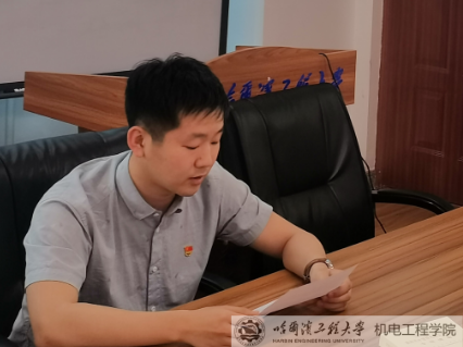 机械设计及自动化系党支部宣传委员董立强同志传达学习《bat365中文官方网站党委关于深入开展学习贯彻习近平新时代中国特色社会主义思想主题教育的工作方案》。