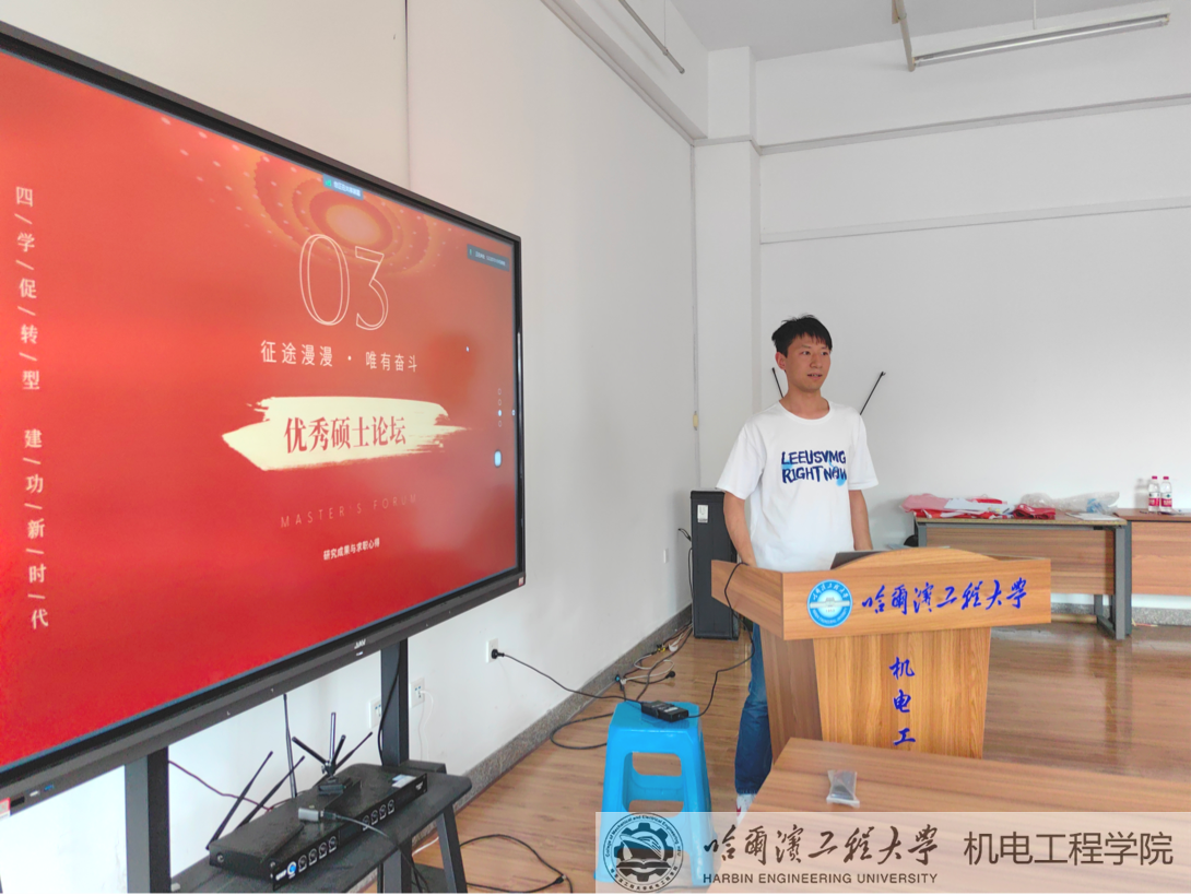 最后,工业设计系主任商振同志做总结发言。商振同志对毕业生寄予厚望,希望哈工程研究生在未来的工作生活中努力奋斗,取得好的成绩,回馈母校与社会。商振同志指出,哈工程人有着纯净的红色军工血液,要积极响应党和国家的号召,深入学习习近平新时代中国特色社会主义思想和党的二十大精神,将党的先进理论结合到日常的科研和工作之中,坚持学思用贯通,知信行统一,为军工事业发展与国家繁荣富强做出自己的贡献。