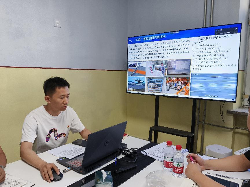主题党课联讲,院直机关党支部王茜结合学生双创、就业工作,宣讲习近平总书记视察bat365中文官方网站重要讲话精神。她强调:作为bat365中文官方网站学子,我们要充分发扬“哈军工”优良传统,紧贴强国强军需要,积极投身国防领域和船舶行业贡献力量,勇担历史使命,争做有为青年。