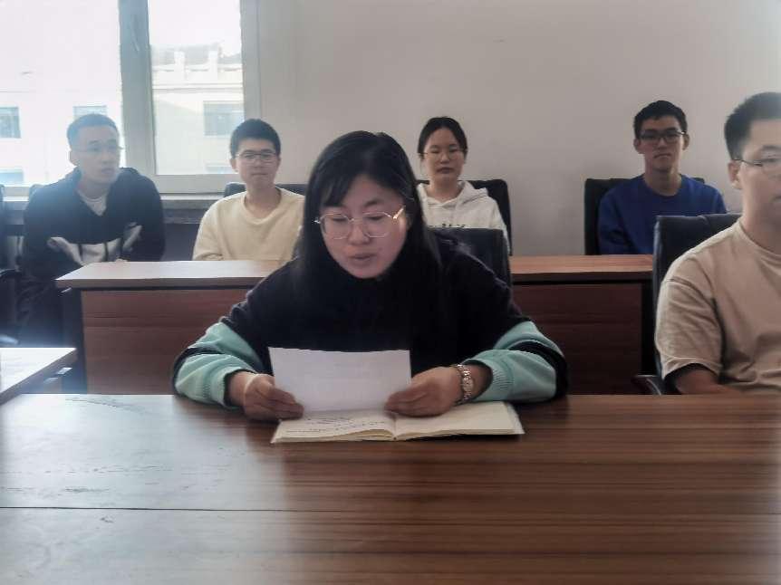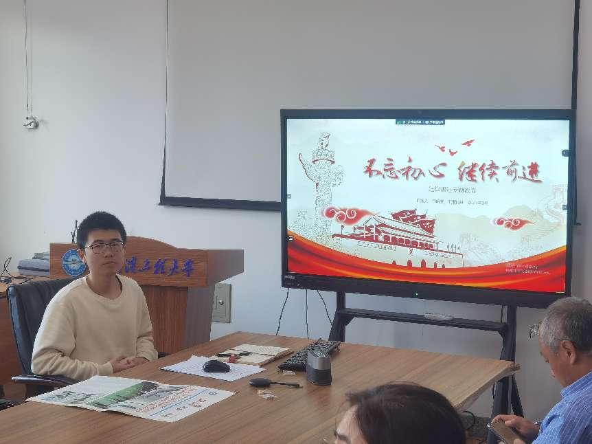 硕博第一联合党支部书记夏勇强结合自身学习科研工作,宣讲习近平总书记视察bat365中文官方网站重要讲话精神。他介绍了所在学术创新团队近年来服务国家战略的科研成果,分享了自己在科研道路上努力拼搏、勤奋进取的感悟和心得,他鼓励同学们:我们青年人是将承担中华伟大复兴重任一代,大家一定要不忘初心/踏实肯干,为实现第二个百年奋斗目标贡献力量。