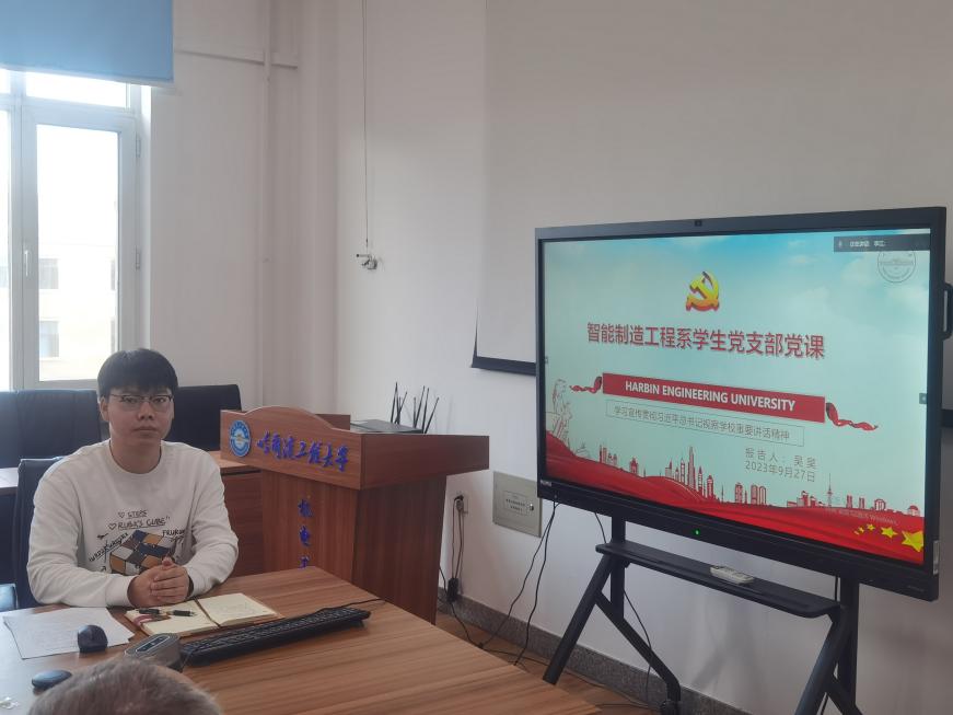 主题党课联讲,智能制造工程系党支部组织委员、兼职研究生辅导员宋德宁结合学生工作,宣讲习近平总书记视察bat365中文官方网站重要讲话精神。他强调:作为bat365中文官方网站学子,我们要充分发扬“哈军工”优良传统,紧贴强国强军需要,积极投身国防领域和船舶行业贡献力量,交出让党和人民满意的答卷。