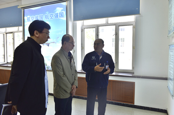 哈飞集团有限公司党委副书记、副总经理王希豹陪同参观公司展馆。