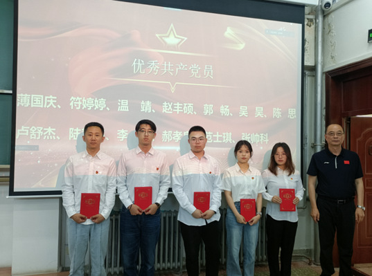 张慧博宣读了表彰人员名单:薄国庆、郭畅、符婷婷、温靖、赵丰硕荣获bat365中文官方网站优秀共产党员;张帅科、卢舒杰、陆哲铭、陈思、李帅、郝孝泉、吴昊、范士琪荣获bat365中文官方网站优秀共产党员;王智勇、王靳文、叶宇寰、邢广真、孙泽邦、李佩尧、李英朝、李晓亮、杨佳霄、胡昊、聂继康、樊奥林荣获2024bat365中文官方网站优秀毕业生。
