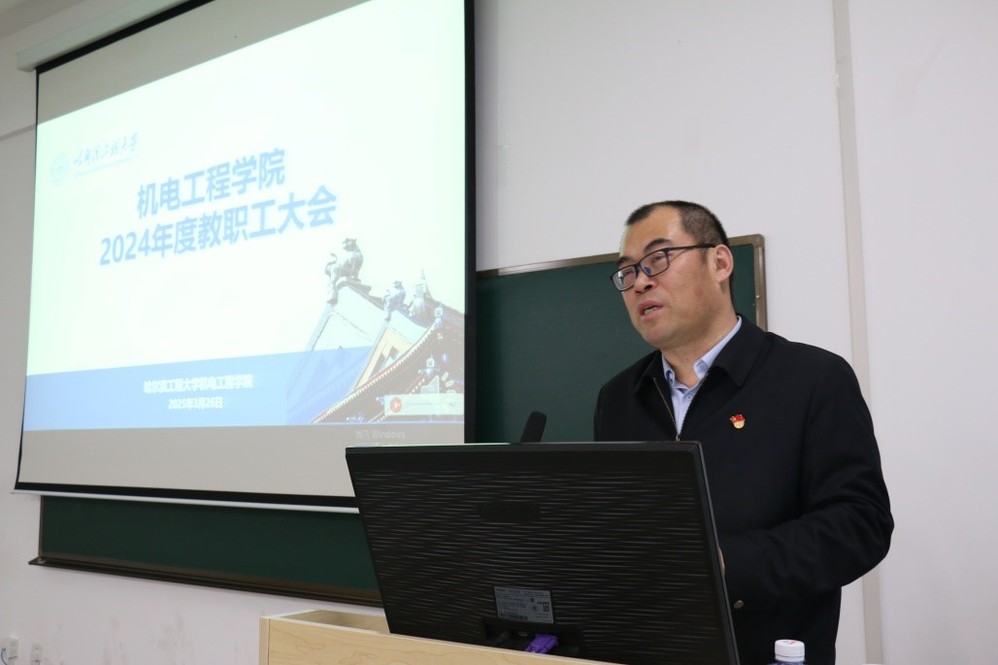 院长、党委副书记、工程训练中心主任徐建安同志作2024年度学院工作报告,总结了学院2024年的成绩,分析了学院当前发展阶段所面临的机遇与挑战,并对2025年新学期工作做出了全面布置。徐建安同志表示,2024年学院深入贯彻落实党的二十届三中全会以及习近平总书记视察学校时的重要讲话精神,坚决落实学校党委提出的“五个坚持、五个注重”办学原则,取得了一定成效。新的一年里,学院将聚焦国家船、海、军、民重大任务需求,瞄准机械工程学科未来发展动态,深化学院学科特色内涵,牢记立德树人根本任务,做好有组织的人才培养和科学研究工作,以学科建设为引领把学院的各项发展推向新的高度。