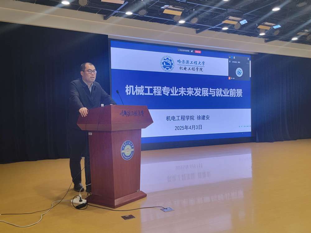 首先,徐建安院长向参会的同学们做了题为《机械工程专业未来发展与就业前景》的讲座,分别从机械工程专业简介、机械工程服务领域、机械专业与中国智造、机械专业就业前景四个方面进行了介绍。徐院长强调,作为一所以海洋与国防为特色的高校,肩负着服务国家装备制造和海洋科技发展的光荣使命。哈军工的优良传统为我们积淀了深厚的军工底蕴,多年来培养的毕业生以“可靠顶用、拔尖创新”的鲜明特质,赢得了国防科研院所和高端装备制造单位的高度认可。他勉励同学们要珍惜学习时光,勇攀科技高峰,以实际行动投身海洋强国建设,为打造国之重器贡献青春力量!