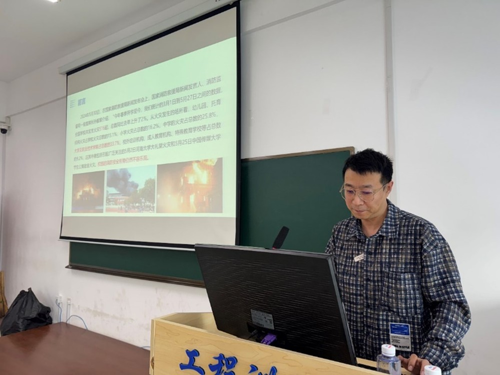 活动伊始,校安保处防火科负责人黄国庆老师为师生们带来了一场生动且实用的消防安全知识培训。黄国庆老师结合校园实际情况与典型火灾案例,深入浅出地讲解了火灾的成因、危害以及预防措施。师生们认真聆听,积极提问,现场学习氛围浓厚。