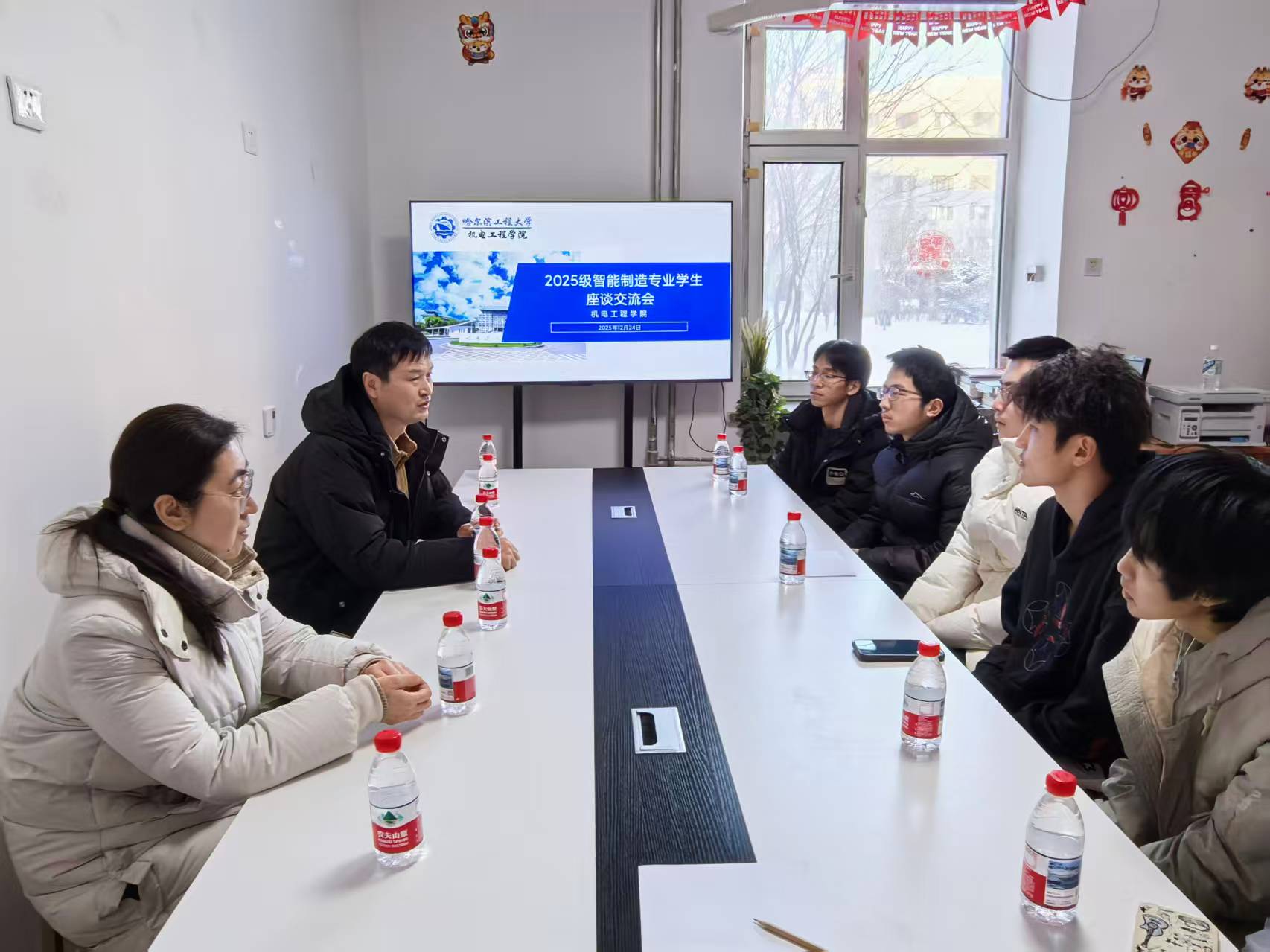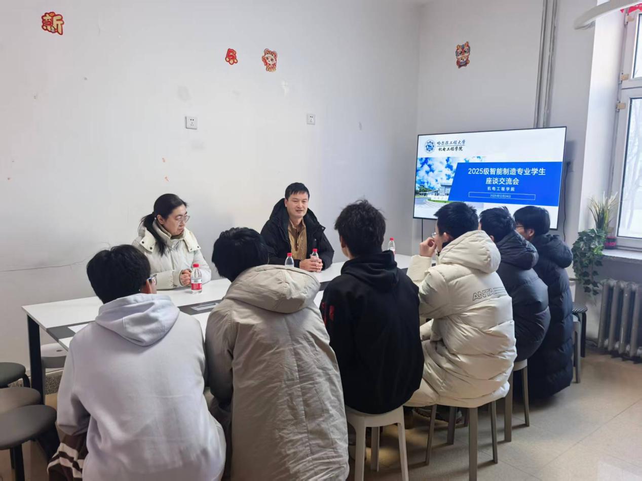 12月24日下午,bat365中文官方网站智能制造系党支部书记李江、教师郭健来到海岳书院138活动室,与2025级智能制造工程专业的同学们开展了一场深入而亲切的座谈交流。本次座谈会旨在加强专业教师与新生之间的沟通联系,引导新生更好适应大学生活、明确专业方向。座谈会由2025级辅导员于超群主持。